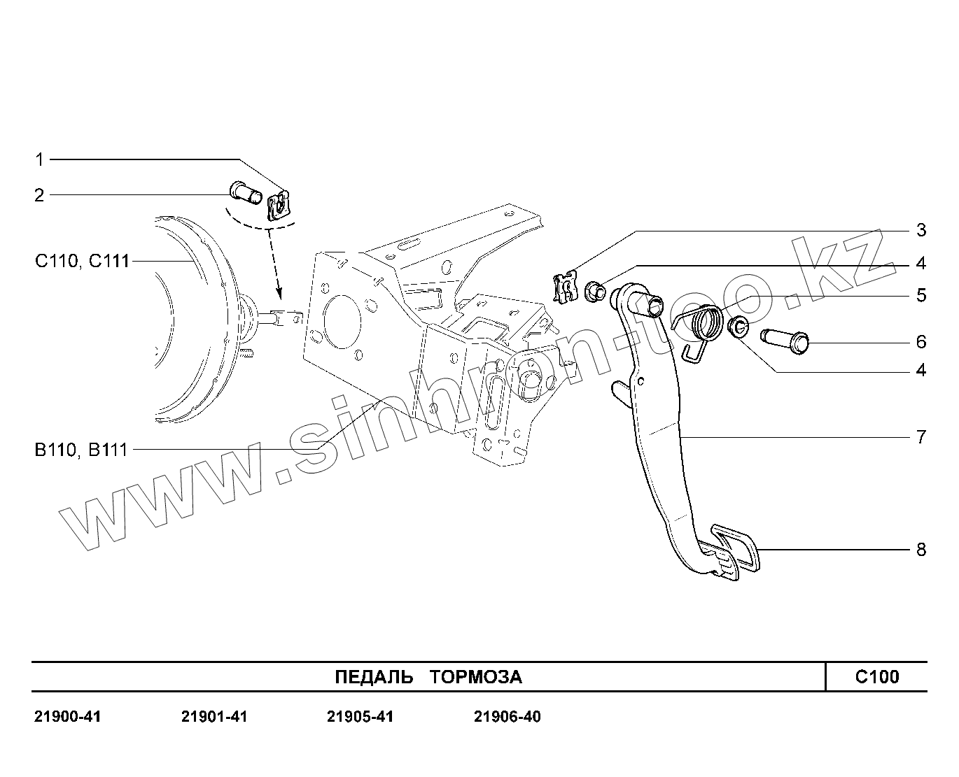 Каталог запасных частей к технике: ВАЗ LADA Granta 2190. C100. Педаль тормоза