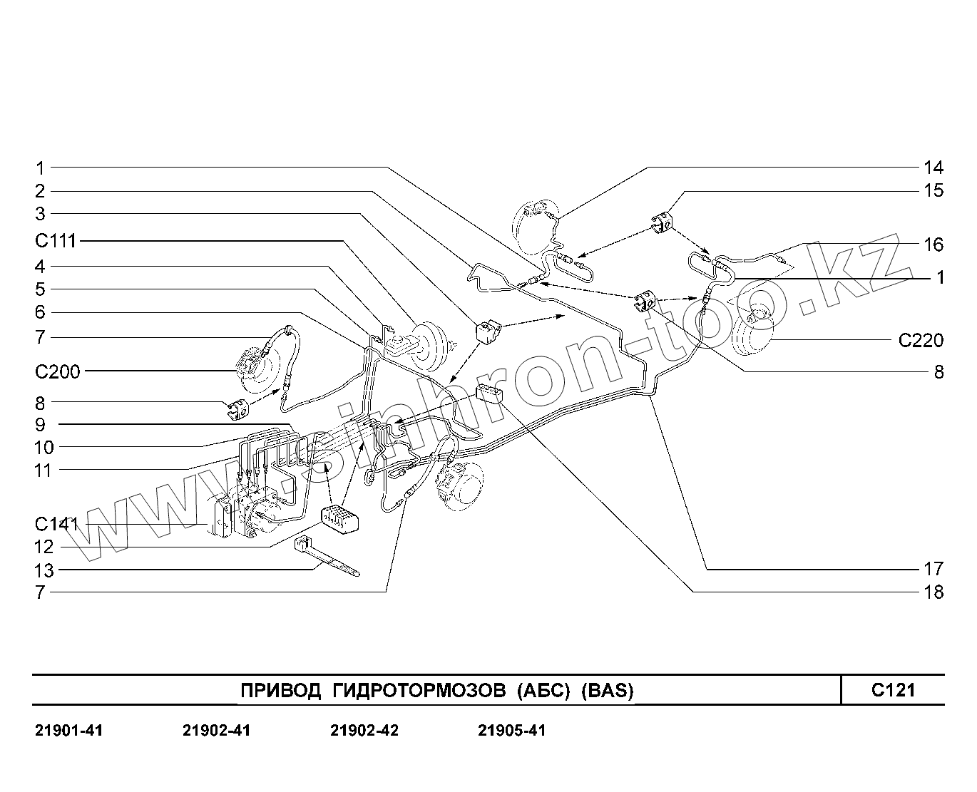 Каталог запасных частей к технике: ВАЗ LADA Granta 2190. C121. Привод гидротормозов