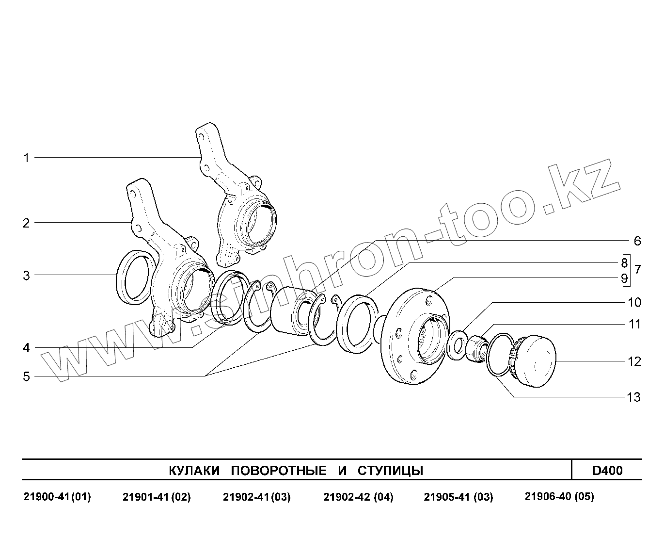 Каталог запасных частей к технике: ВАЗ LADA Granta 2190. D400. Кулаки поворотные и ступицы