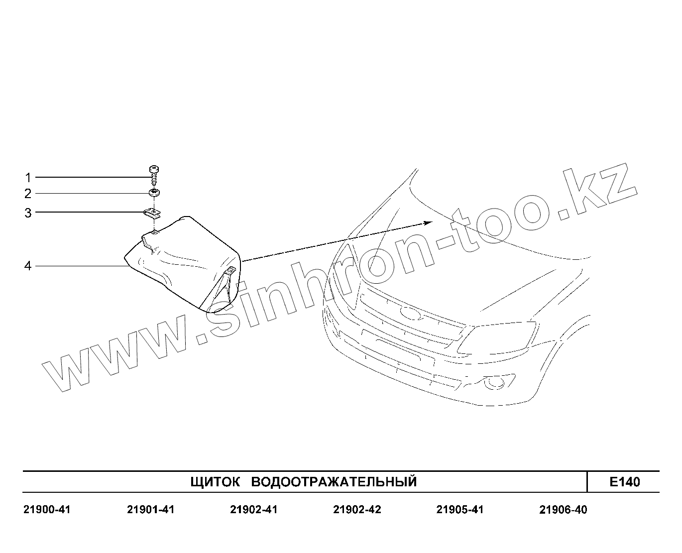 Каталог запасных частей к технике: ВАЗ LADA Granta 2190. E140. Щиток водоотражательный