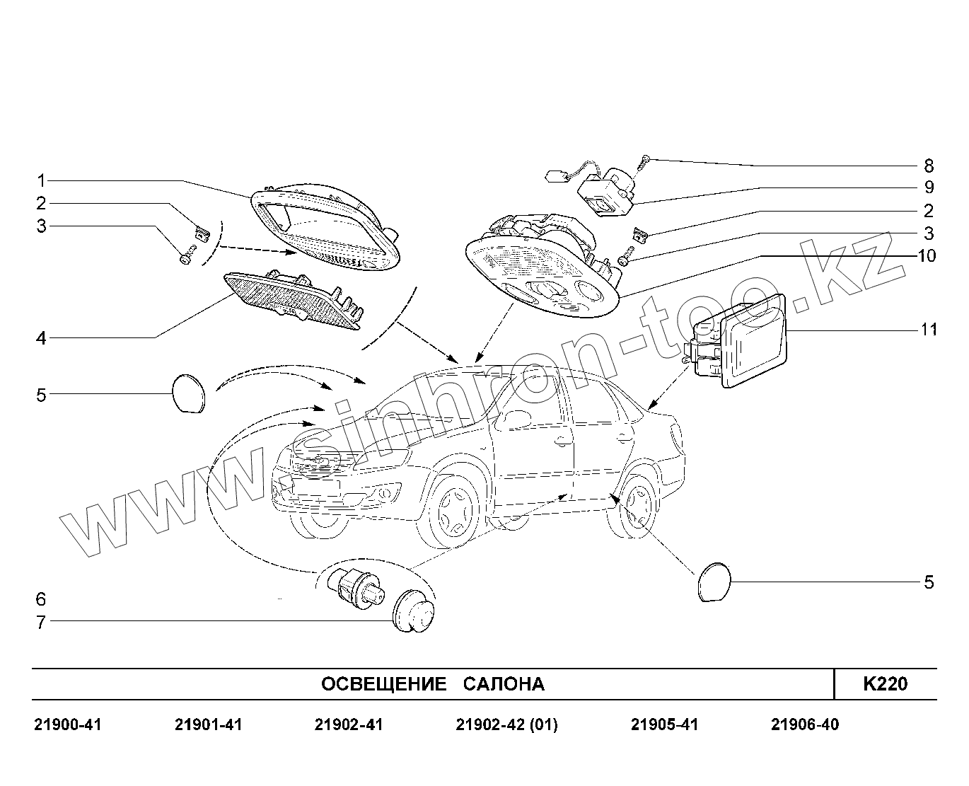 Каталог запасных частей к технике: ВАЗ LADA Granta 2190. K220. Освещение салона