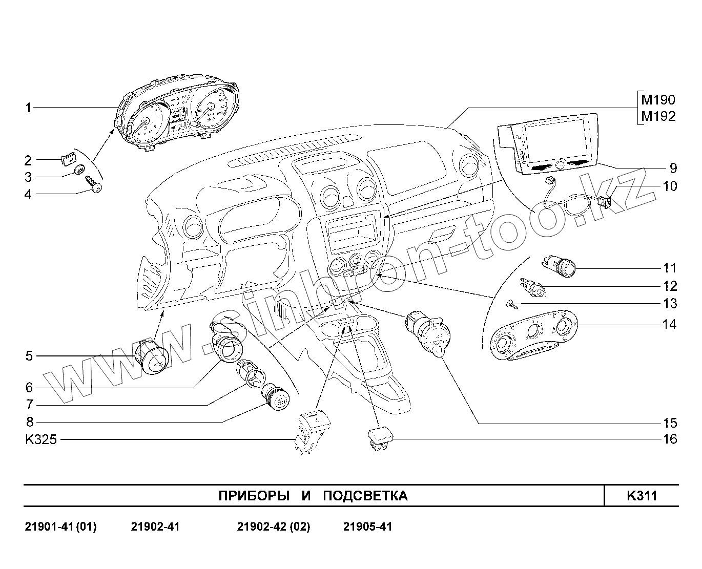 Каталог запасных частей к технике: ВАЗ LADA Granta 2190. K311. Приборы и подсветка