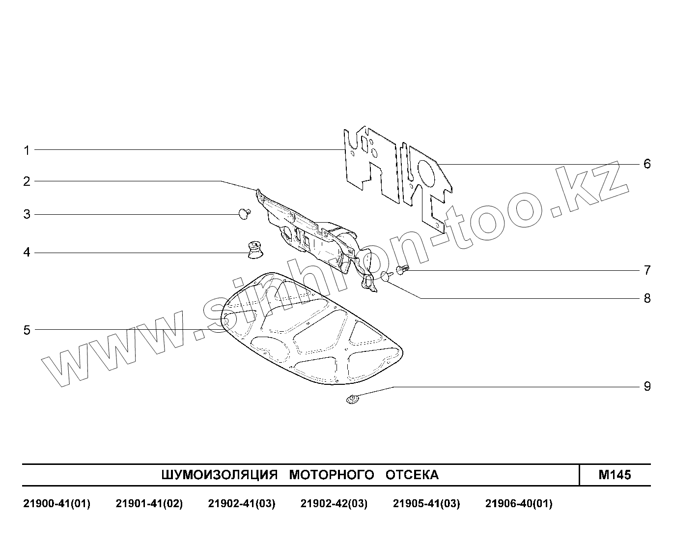 Каталог запасных частей к технике: ВАЗ LADA Granta 2190. M145. Шумоизоляция моторного отсека