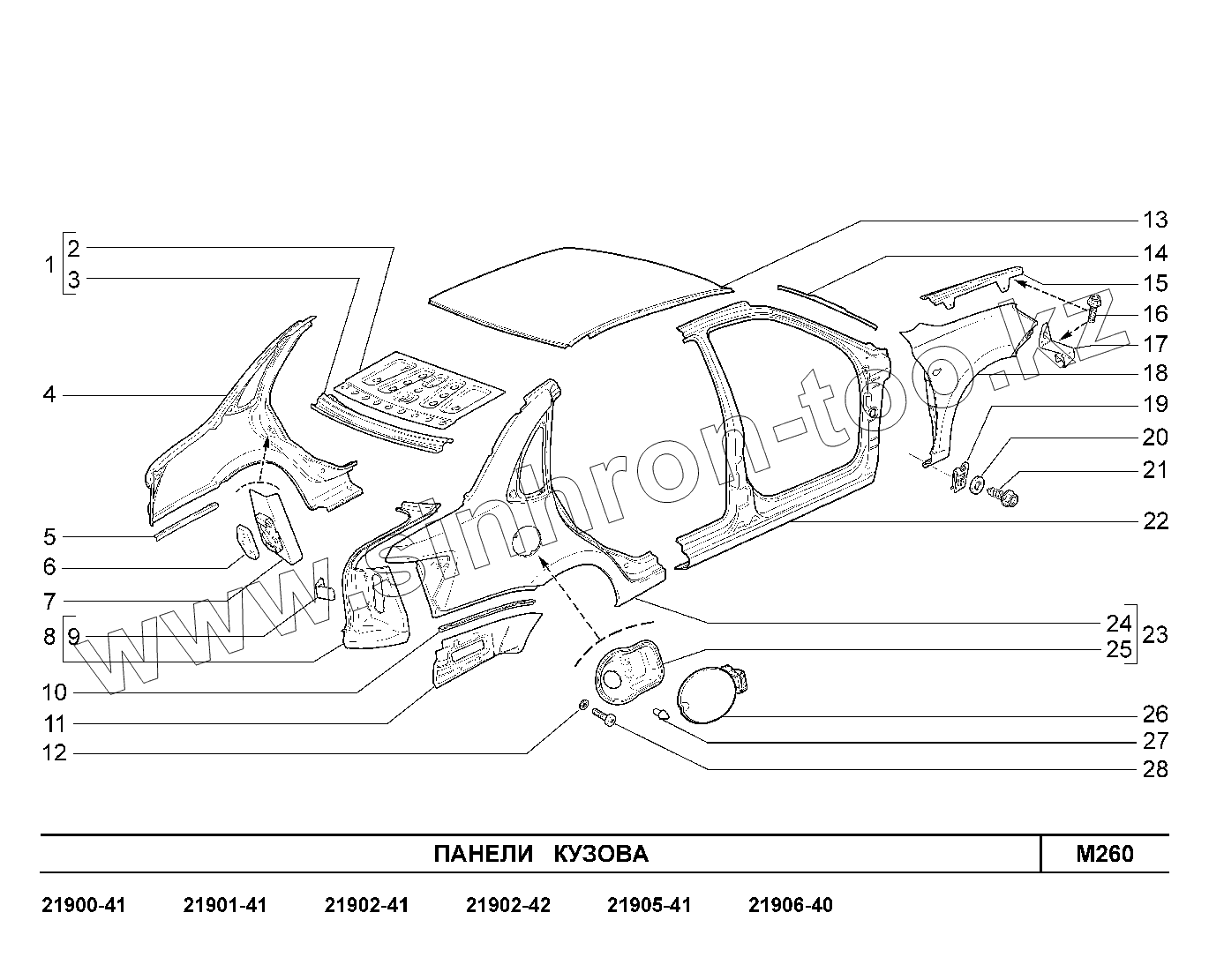 Каталог запасных частей к технике: ВАЗ LADA Granta 2190. M260. Панели кузова