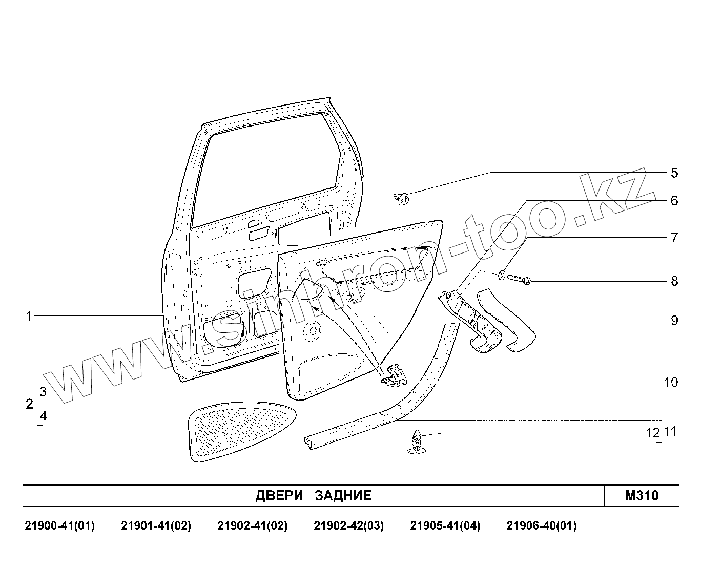 Каталог запасных частей к технике: ВАЗ LADA Granta 2190. M310. Двери задние