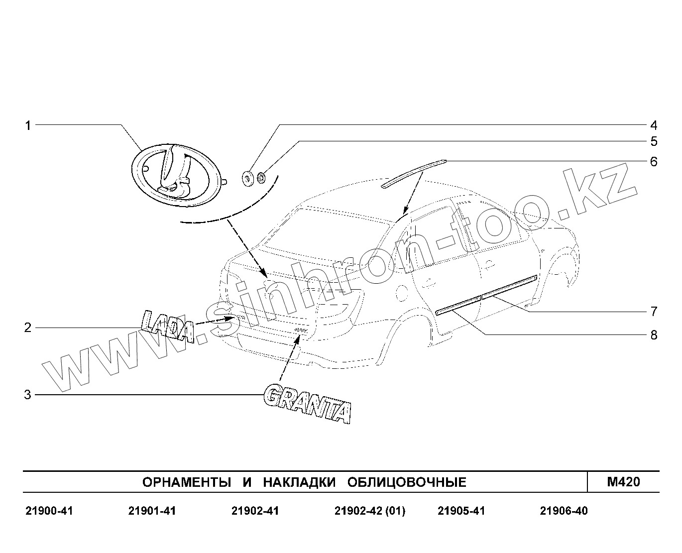 Каталог запасных частей к технике: ВАЗ LADA Granta 2190. M420. Орнаменты и накладки облицовочные