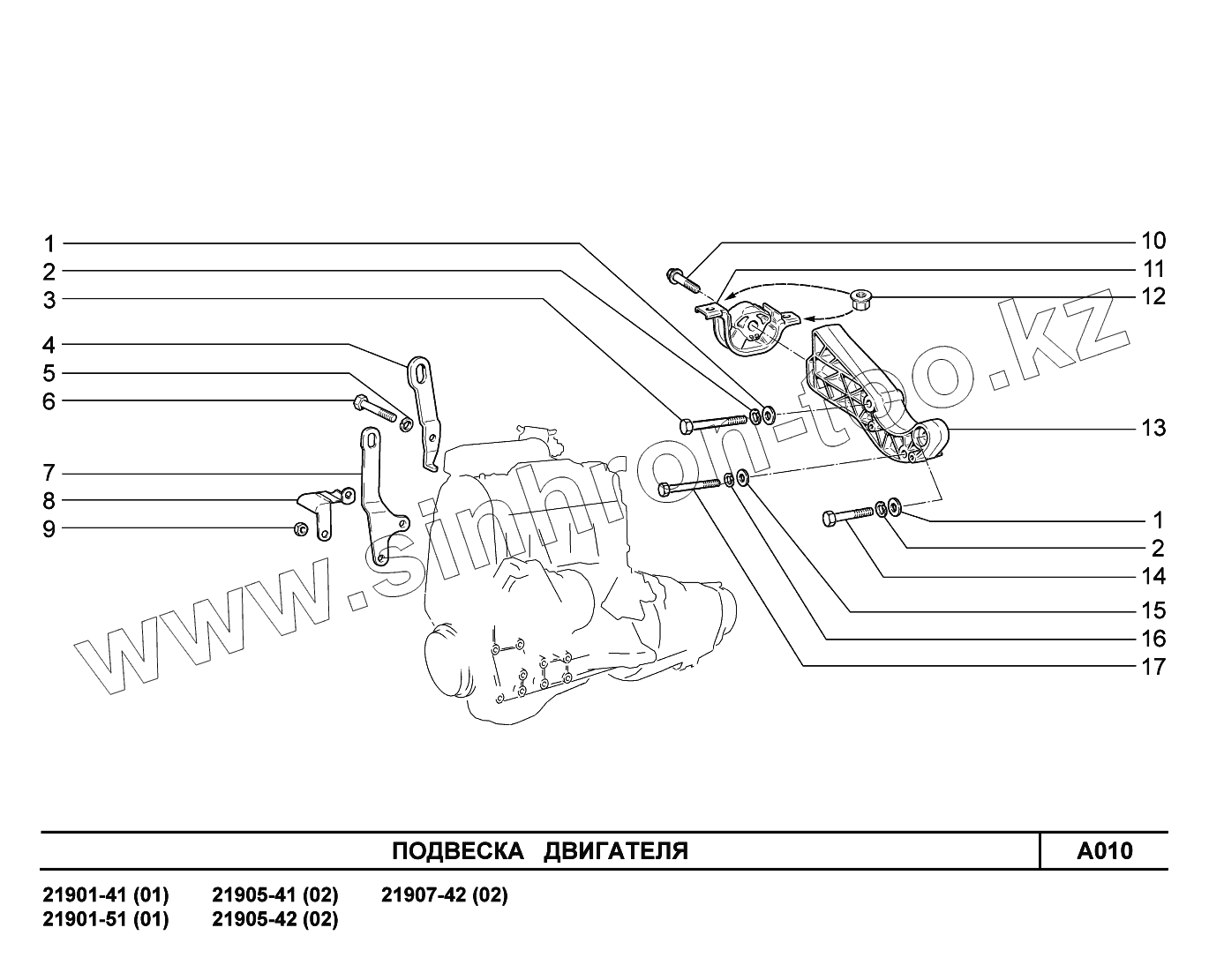 Каталог запасных частей к технике: ВАЗ LADA Granta 2190. A010. Подвеска двигателя