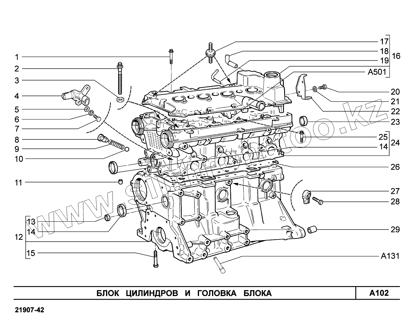 A102. Блок цилиндров и головка блока