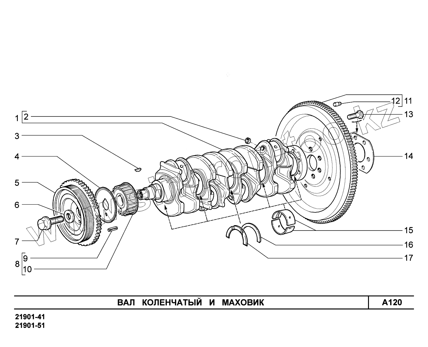 Каталог запасных частей к технике: ВАЗ LADA Granta 2190. A120. Вал коленчатый и маховик