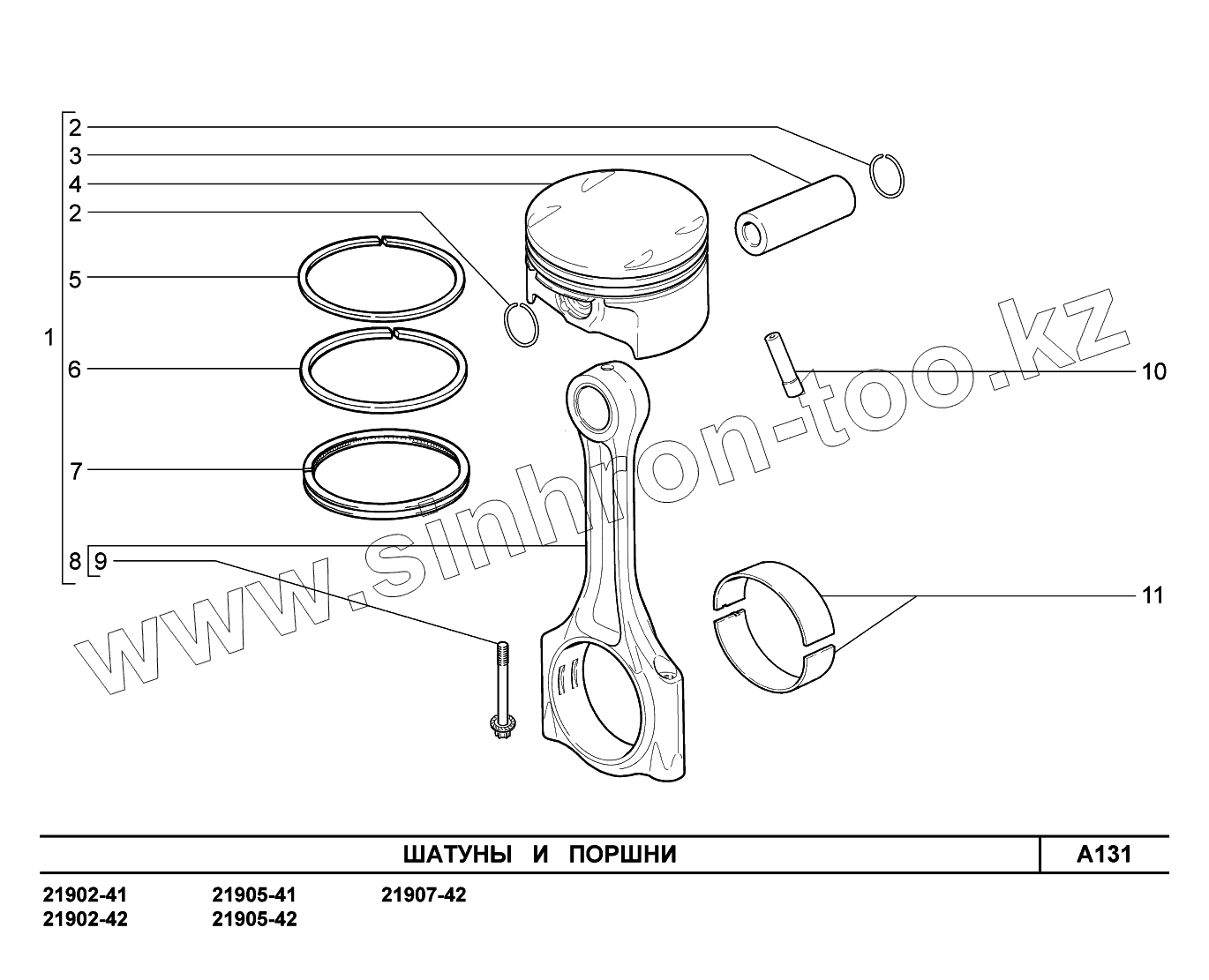 Каталог запасных частей к технике: ВАЗ LADA Granta 2190. A131. Шатуны и поршни