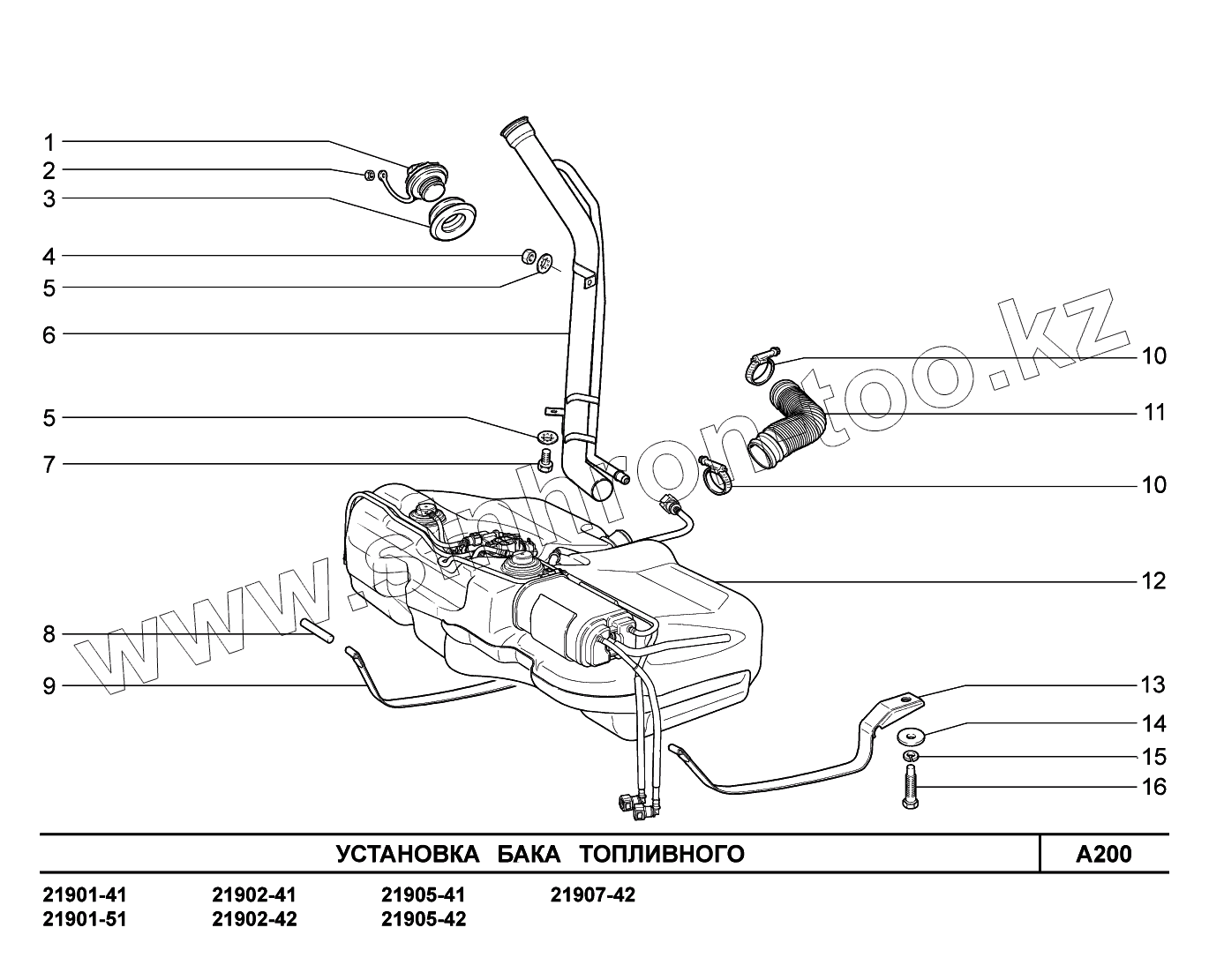 Каталог запасных частей к технике: ВАЗ LADA Granta 2190. A200. Установка бака топливного