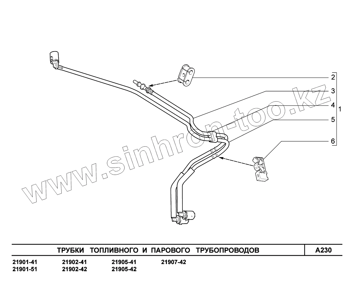 Каталог запасных частей к технике: ВАЗ LADA Granta 2190. A230. Трубки топливного и парового трубопроводов