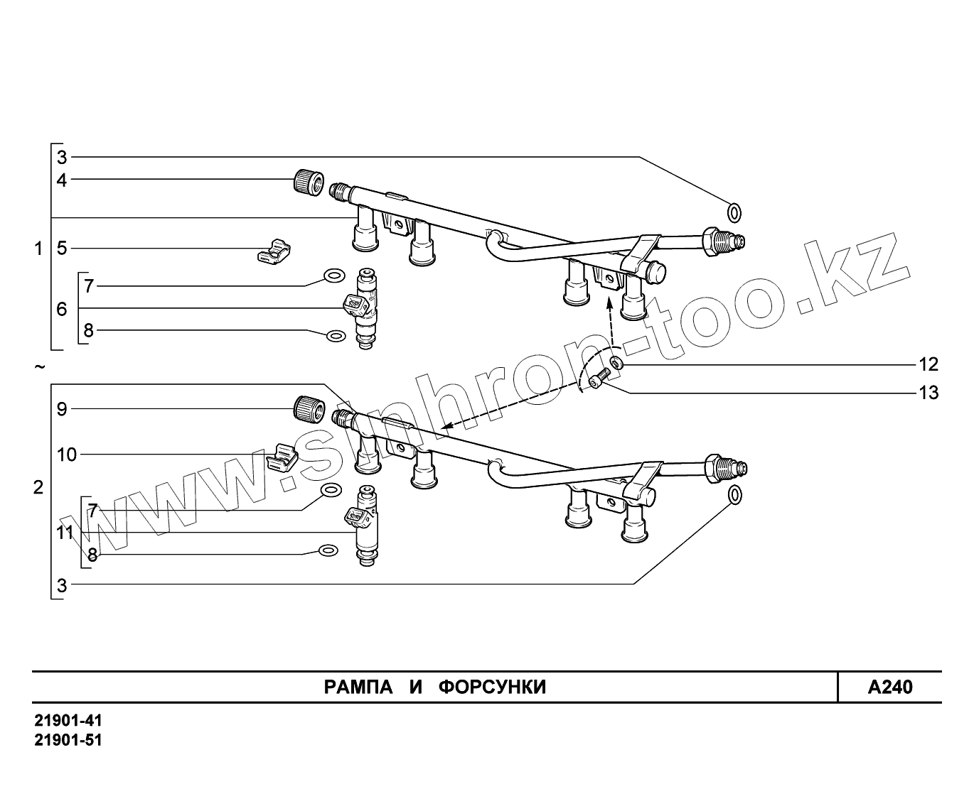 Каталог запасных частей к технике: ВАЗ LADA Granta 2190. A240. Рампа и форсунки