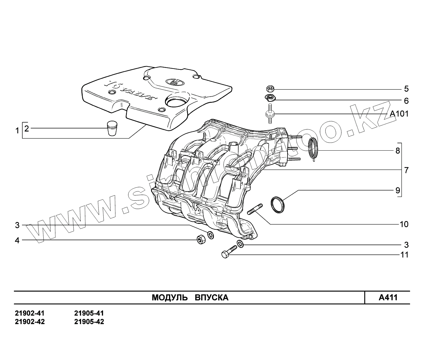 Каталог запасных частей к технике: ВАЗ LADA Granta 2190. A411. Модуль впуска