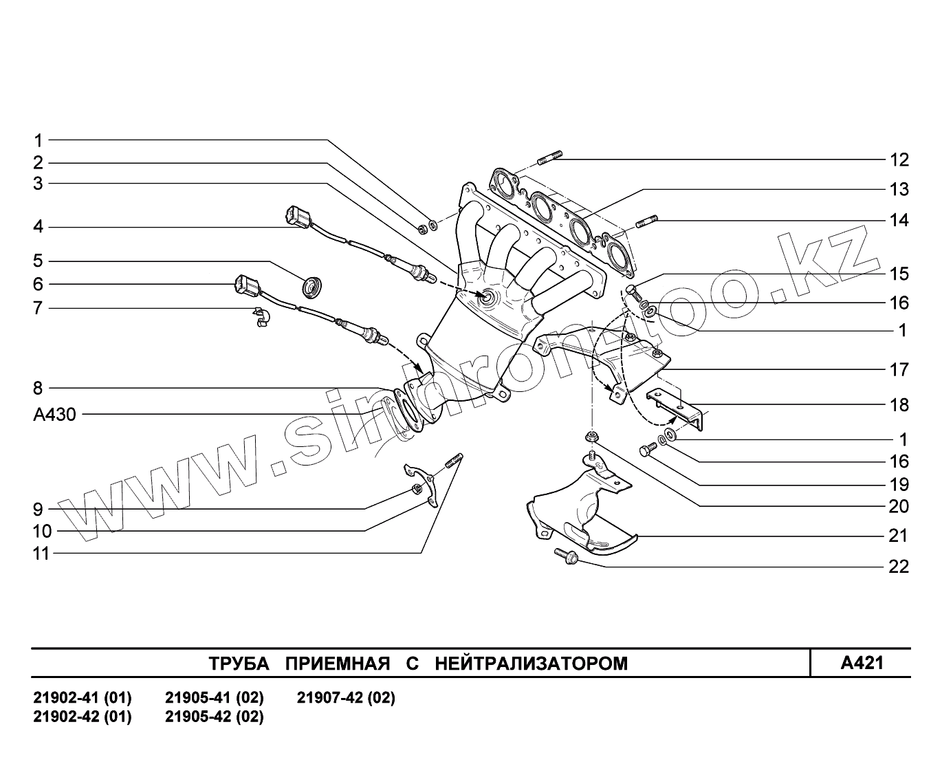 Каталог запасных частей к технике: ВАЗ LADA Granta 2190. A421. Труба приемная с нейтрализатором