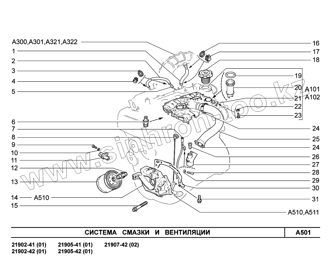 Каталог запасных частей к технике: ВАЗ LADA Granta 2190. A501. Система смазки и вентиляции
