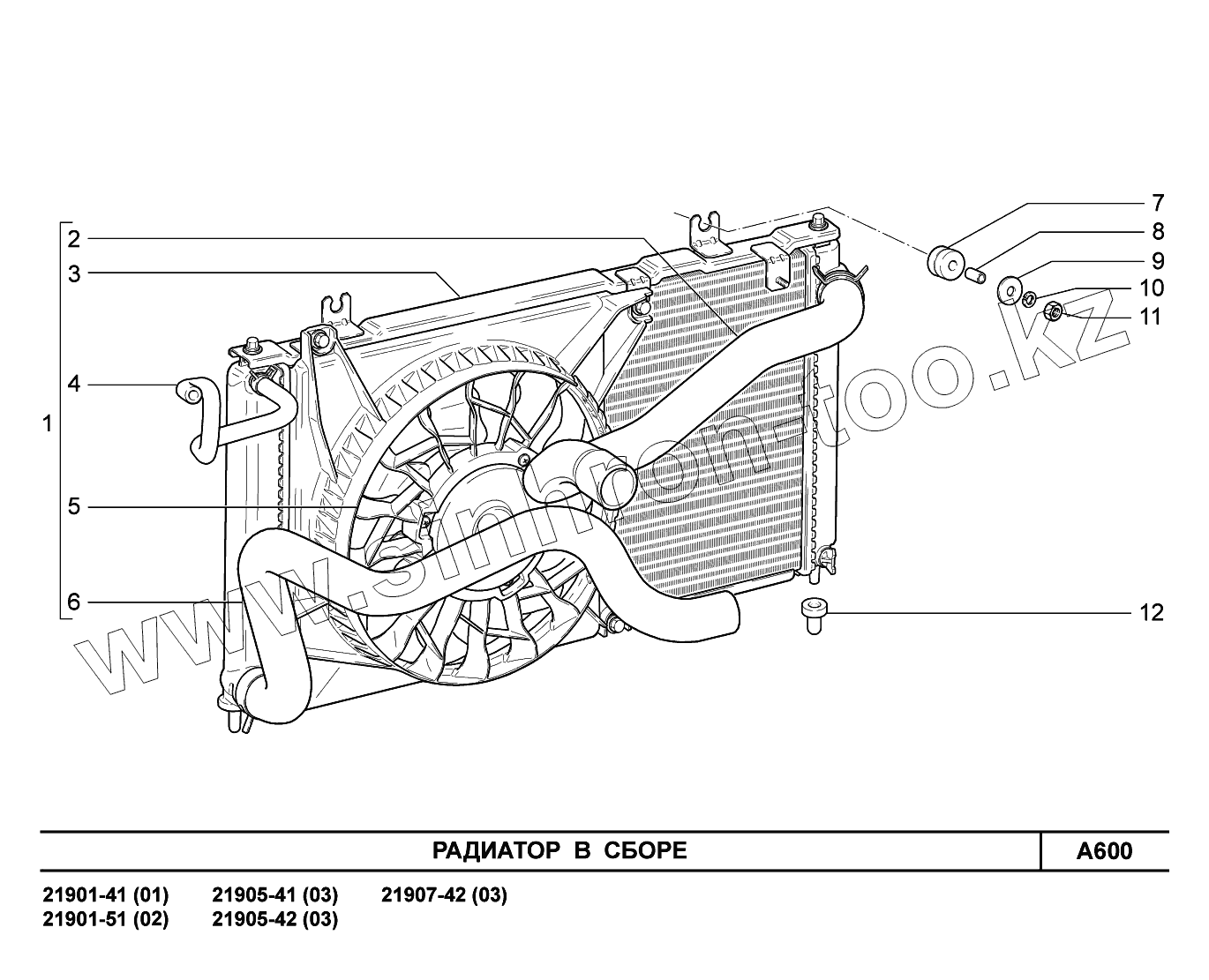 Каталог запасных частей к технике: ВАЗ LADA Granta 2190. A600. Радиатор в сборе