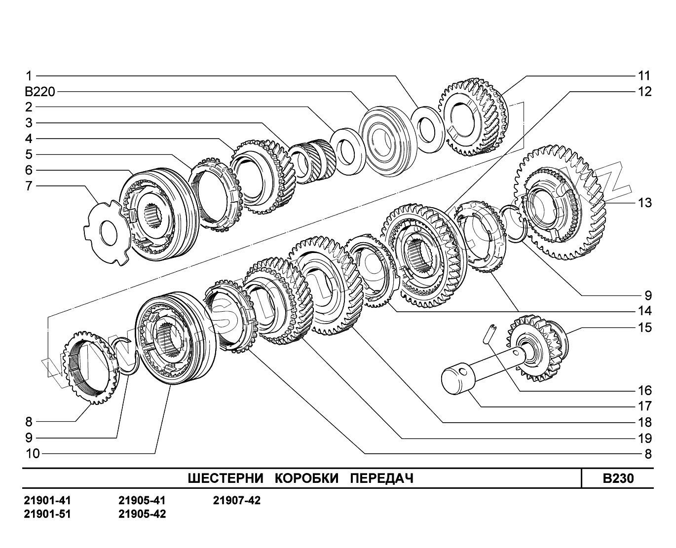 Каталог запасных частей к технике: ВАЗ LADA Granta 2190. B230. Шестерни коробки передач