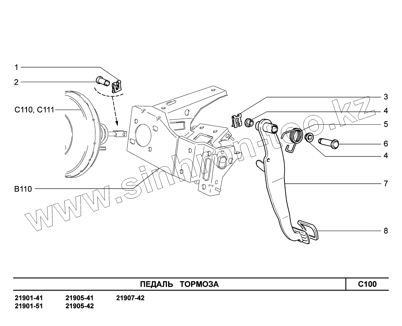 Каталог запасных частей к технике: ВАЗ LADA Granta 2190. C100. Педаль тормоза