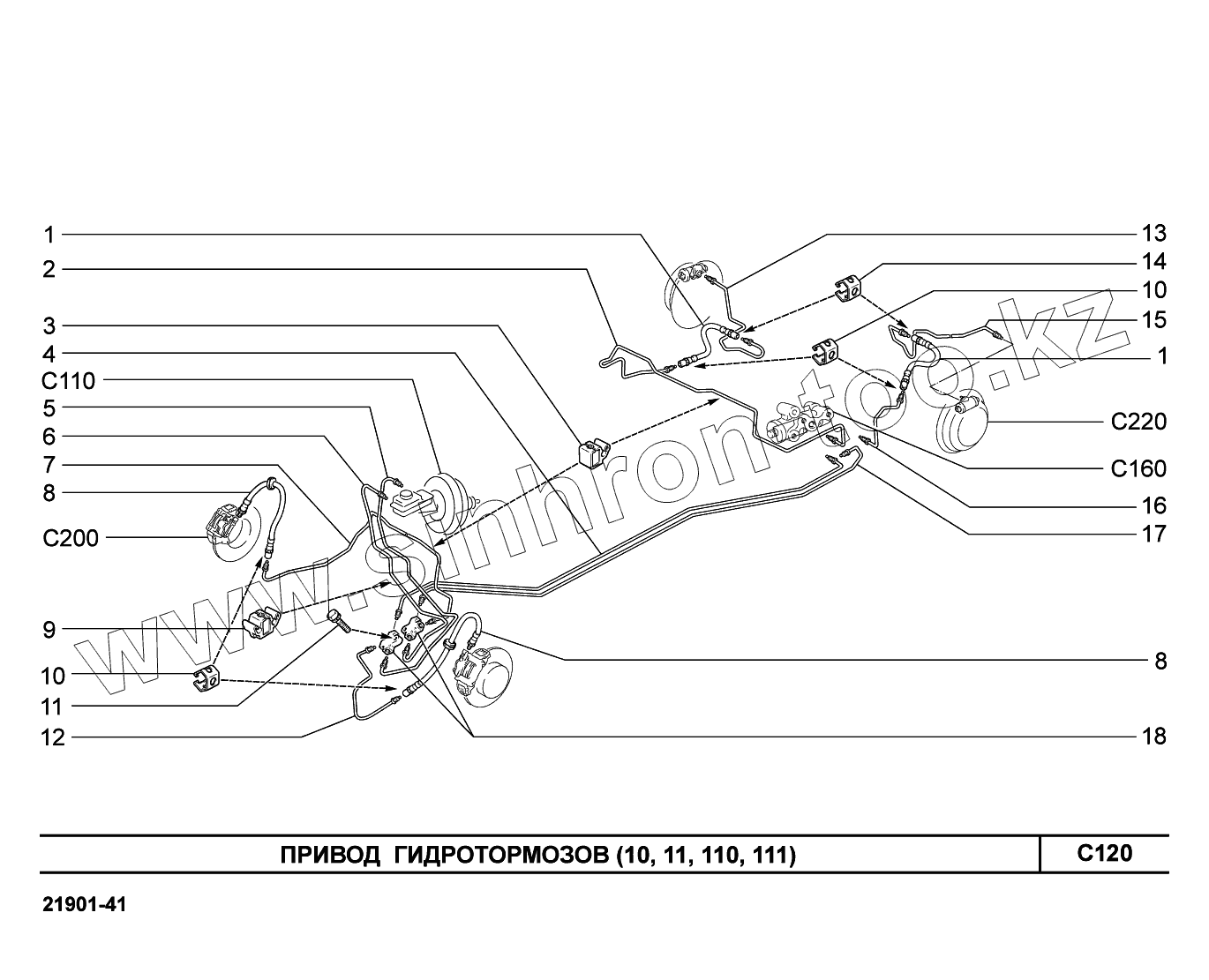 Каталог запасных частей к технике: ВАЗ LADA Granta 2190. C120. Привод гидротормозов