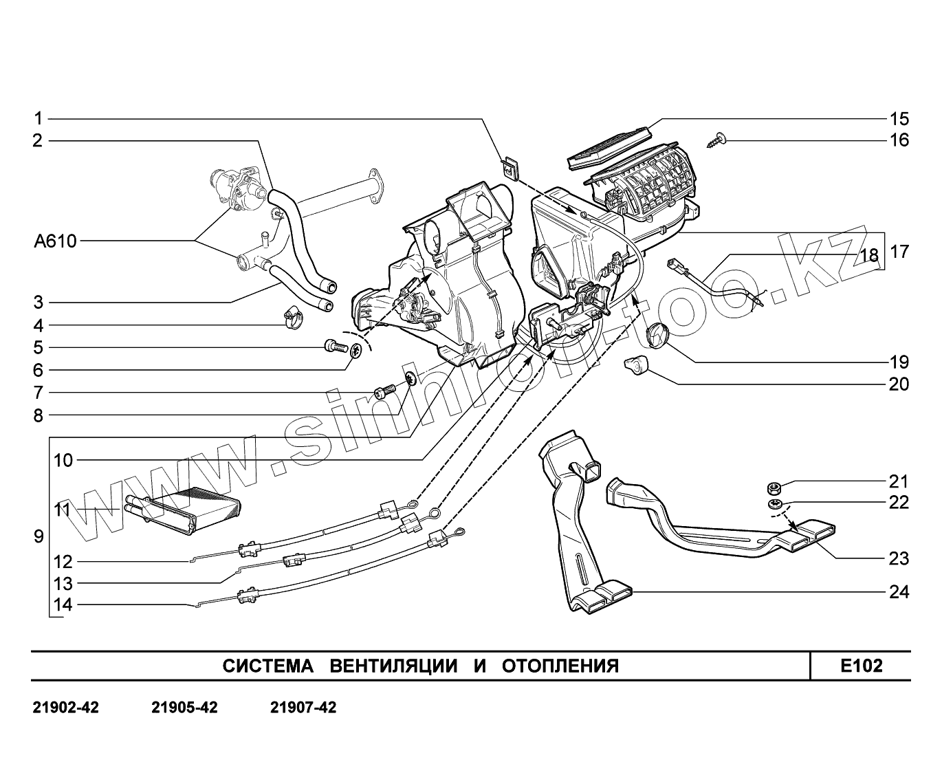 Каталог запасных частей к технике: ВАЗ LADA Granta 2190. E102. Система вентиляции и отопления