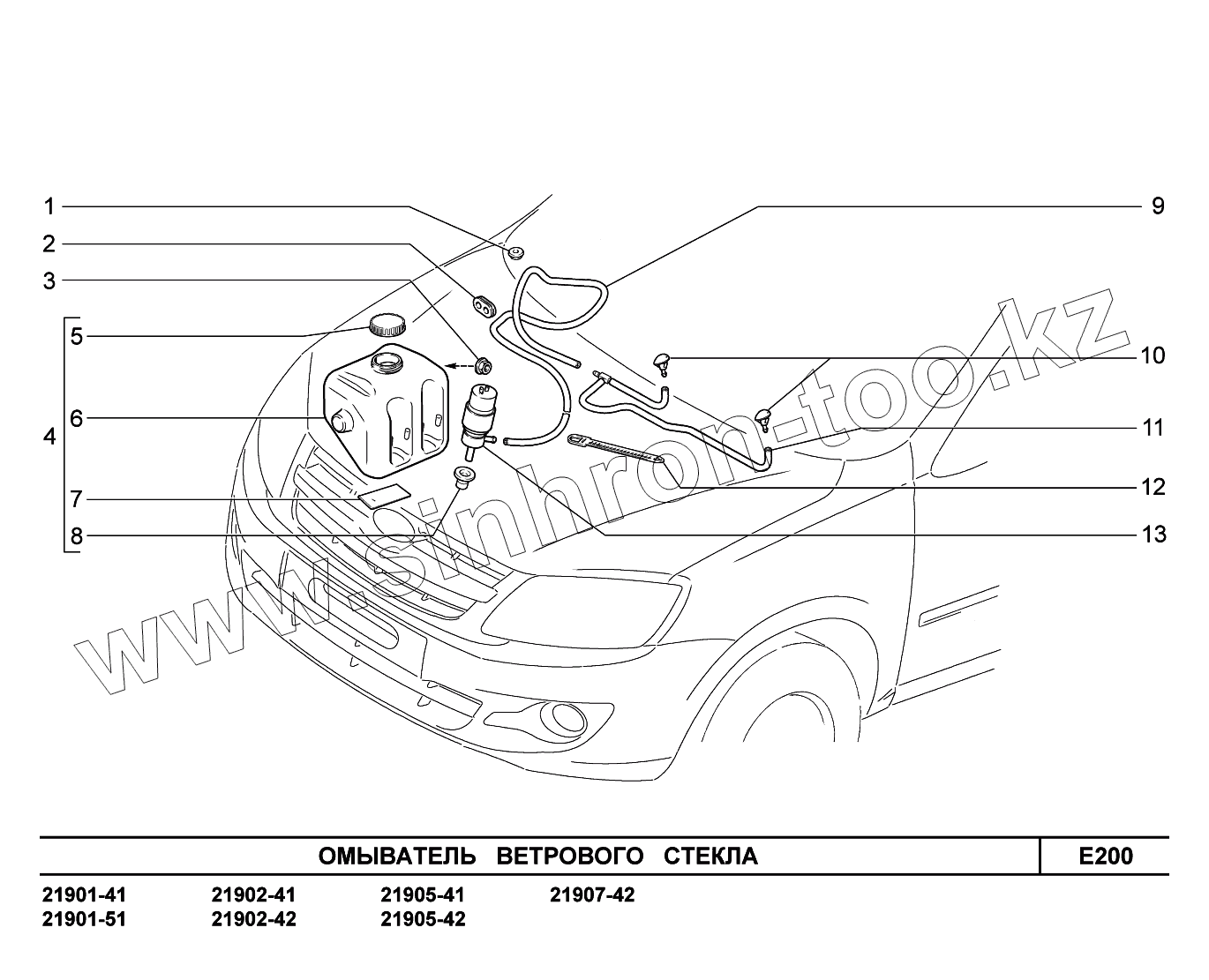 Каталог запасных частей к технике: ВАЗ LADA Granta 2190. E200. Омыватели