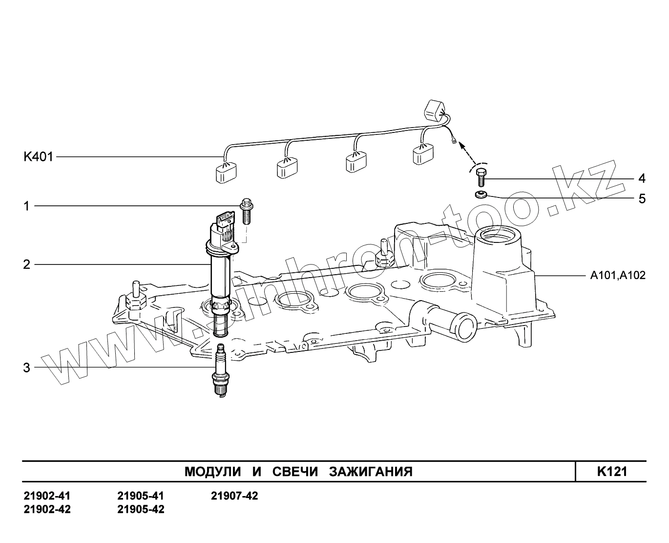 Каталог запасных частей к технике: ВАЗ LADA Granta 2190. K121. Модули и свечи зажигания