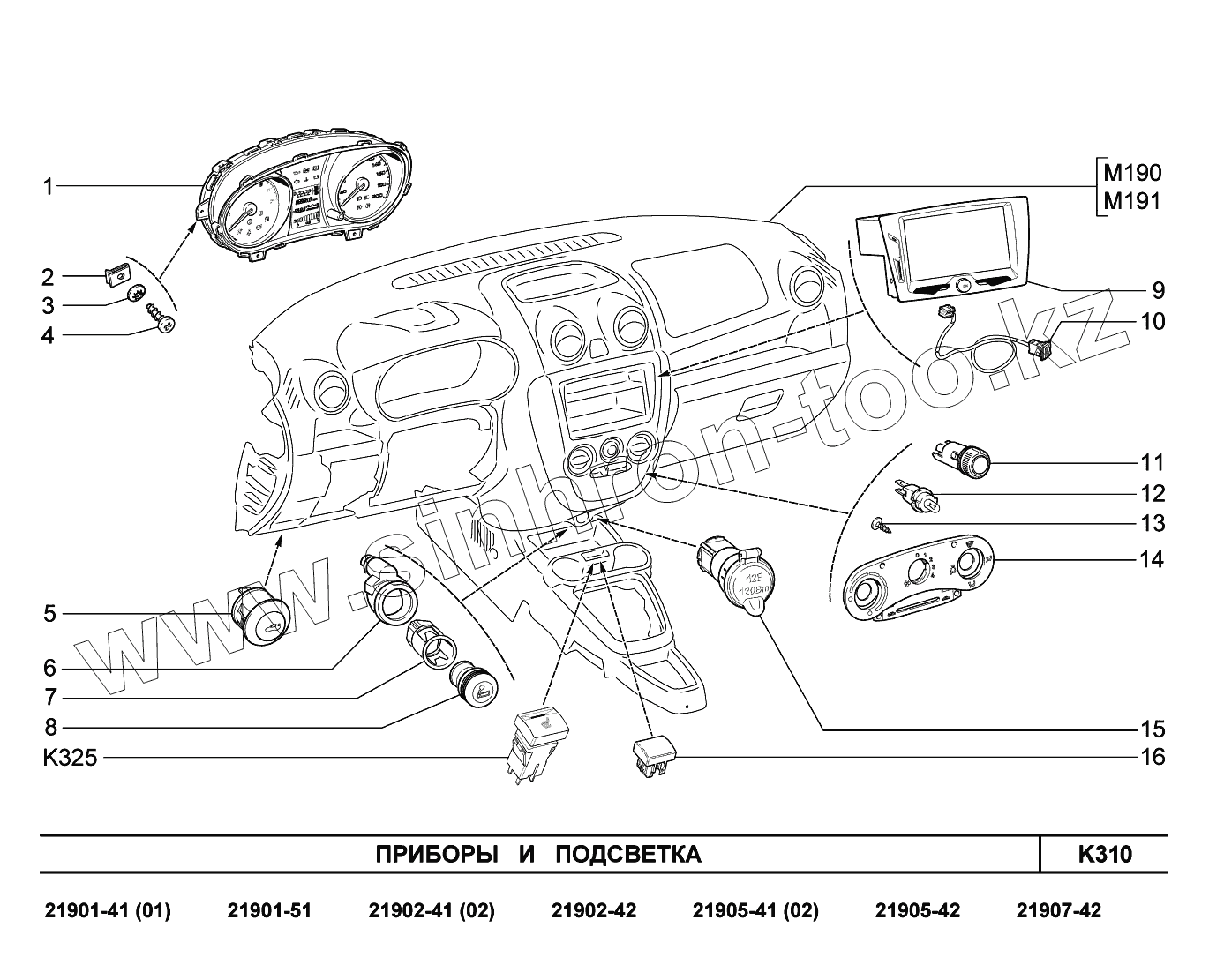 Каталог запасных частей к технике: ВАЗ LADA Granta 2190. K310. Приборы и подсветка