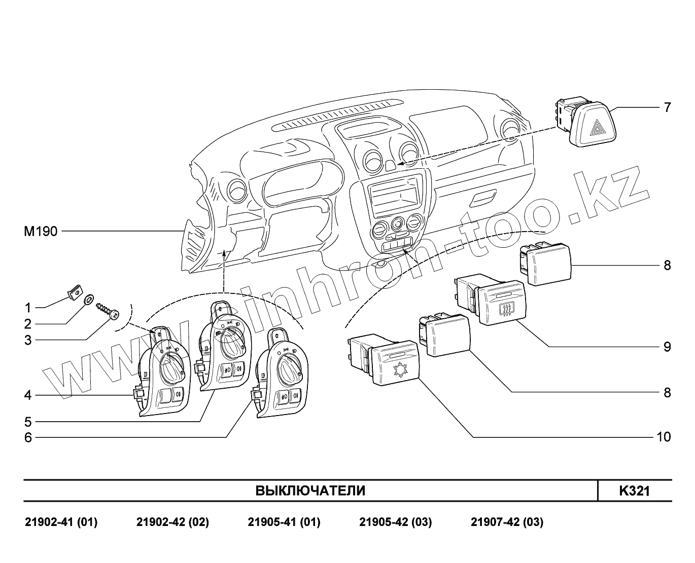 Каталог запасных частей к технике: ВАЗ LADA Granta 2190. K321. Выключатели