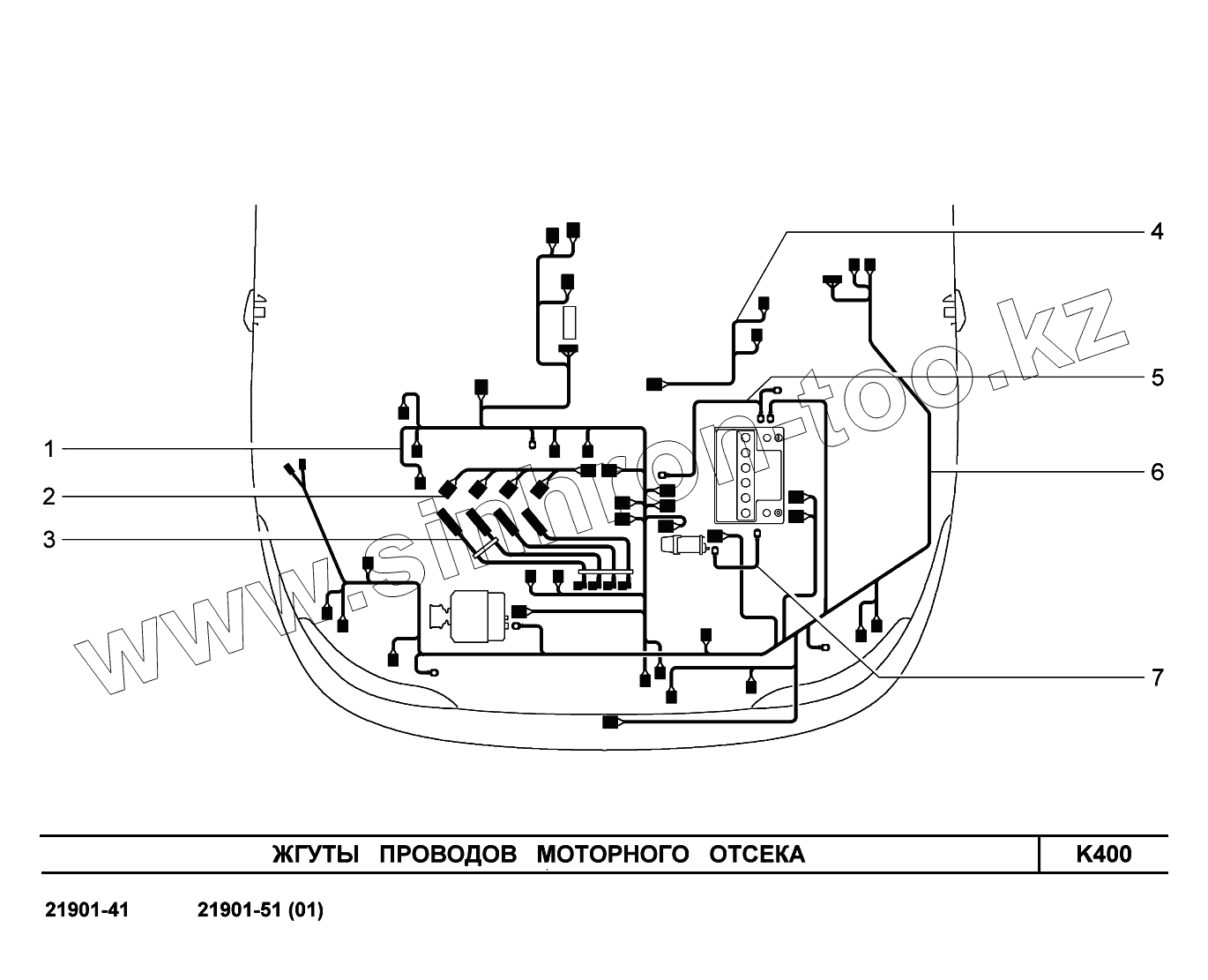 K401. Жгуты проводов моторного отсека