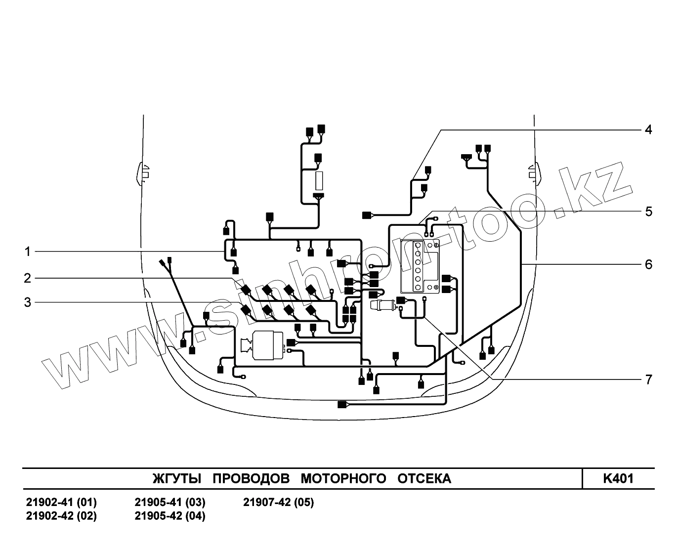 Каталог запасных частей к технике: ВАЗ LADA Granta 2190. K401. Жгуты проводов моторного отсека