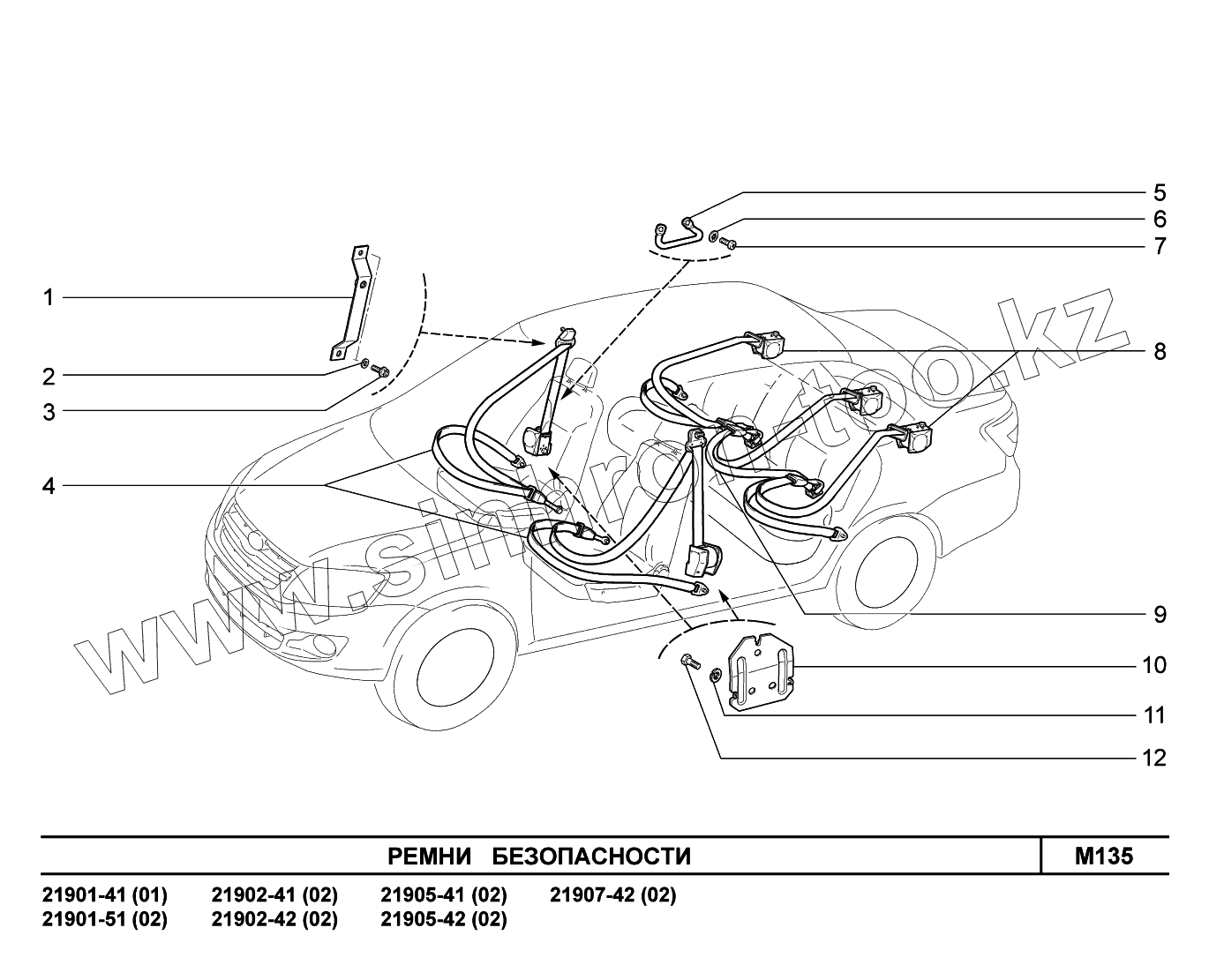 Каталог запасных частей к технике: ВАЗ LADA Granta 2190. M135. Ремни безопасности