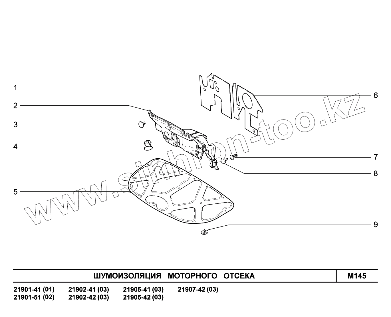 Каталог запасных частей к технике: ВАЗ LADA Granta 2190. M145. Шумоизоляция моторного отсека