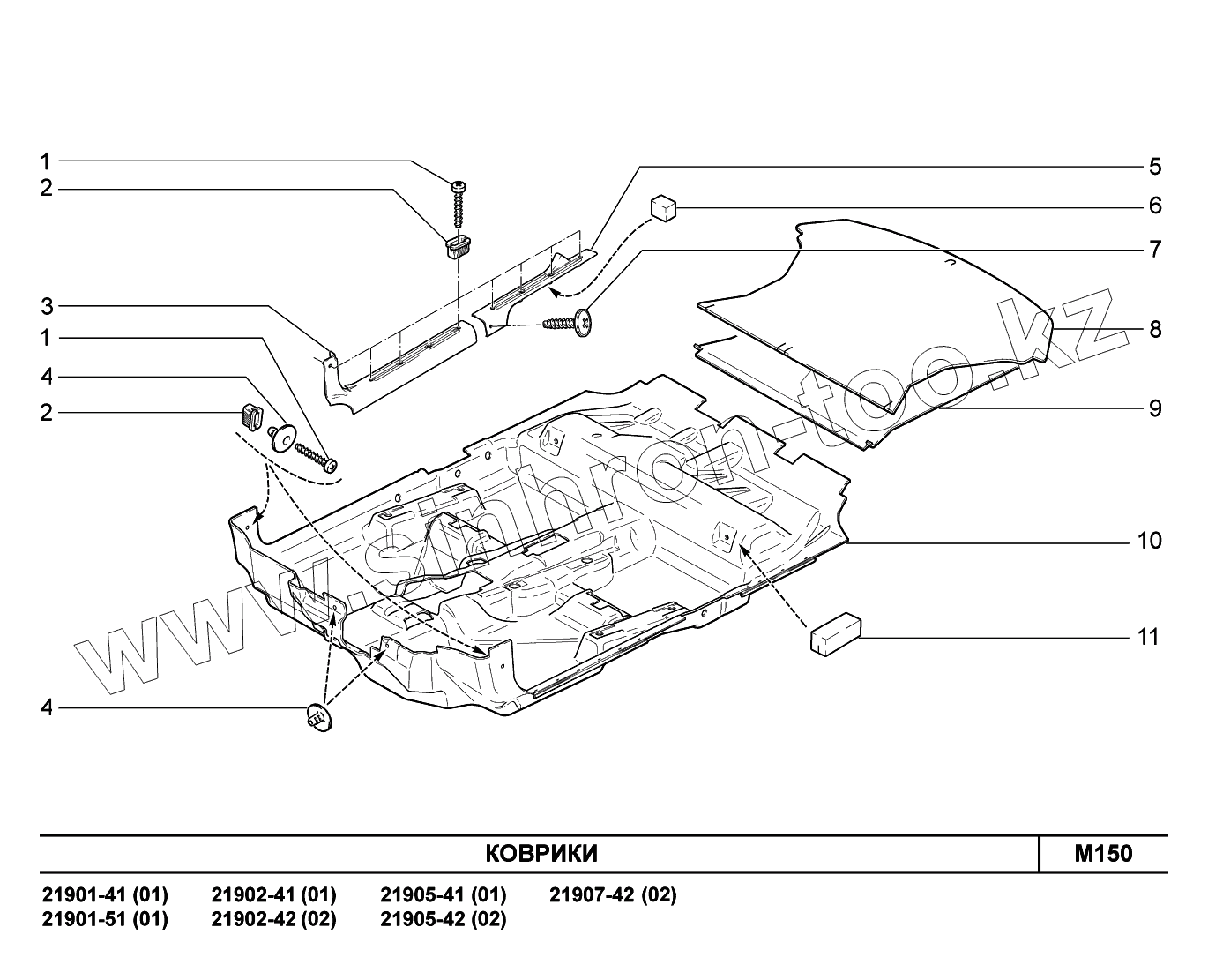 Каталог запасных частей к технике: ВАЗ LADA Granta 2190. M150. Коврики