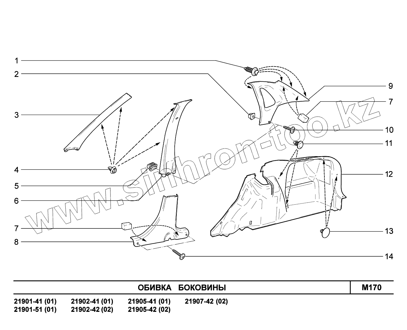 Каталог запасных частей к технике: ВАЗ LADA Granta 2190. M170. Обивка боковины