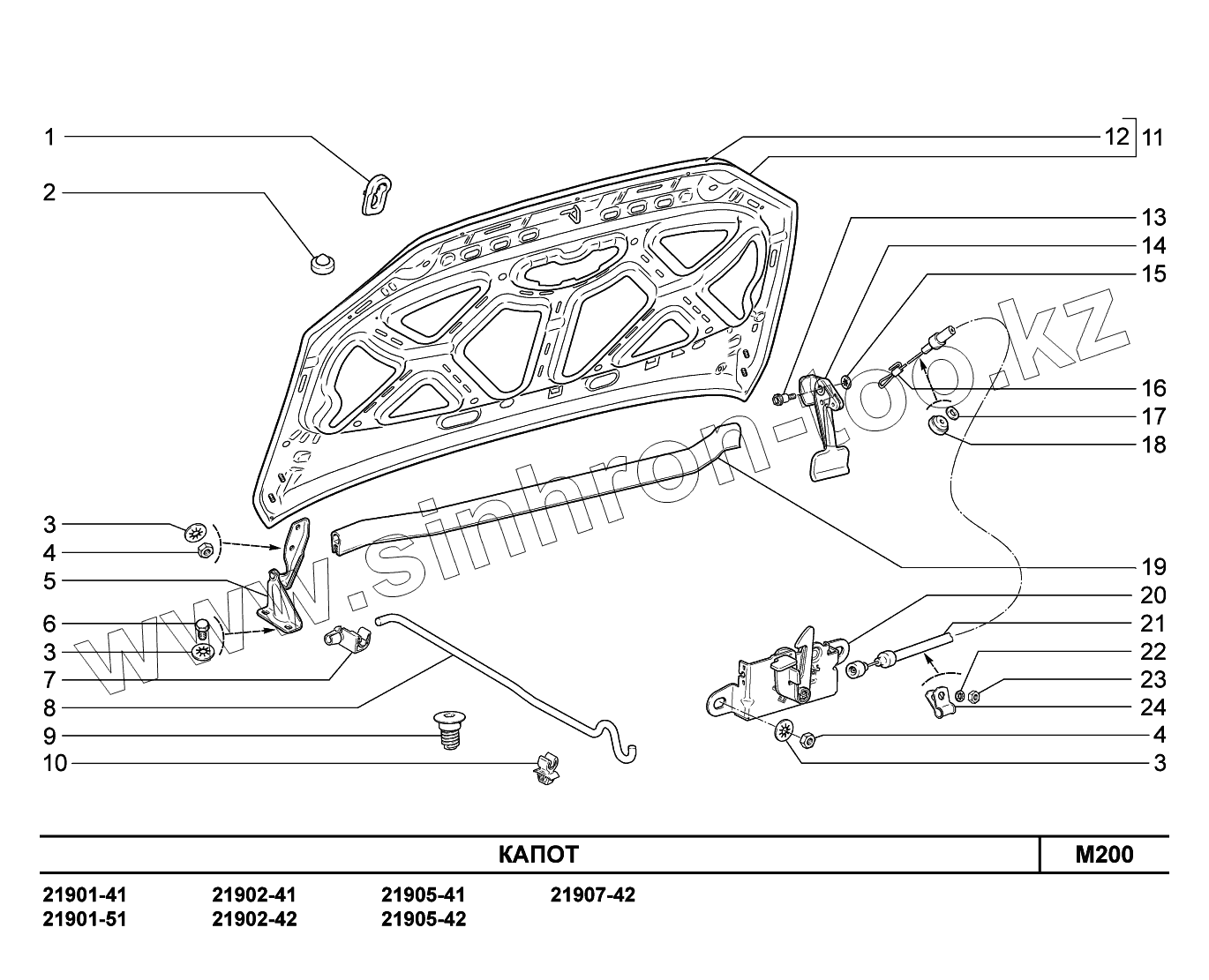 Каталог запасных частей к технике: ВАЗ LADA Granta 2190. M200. Капот