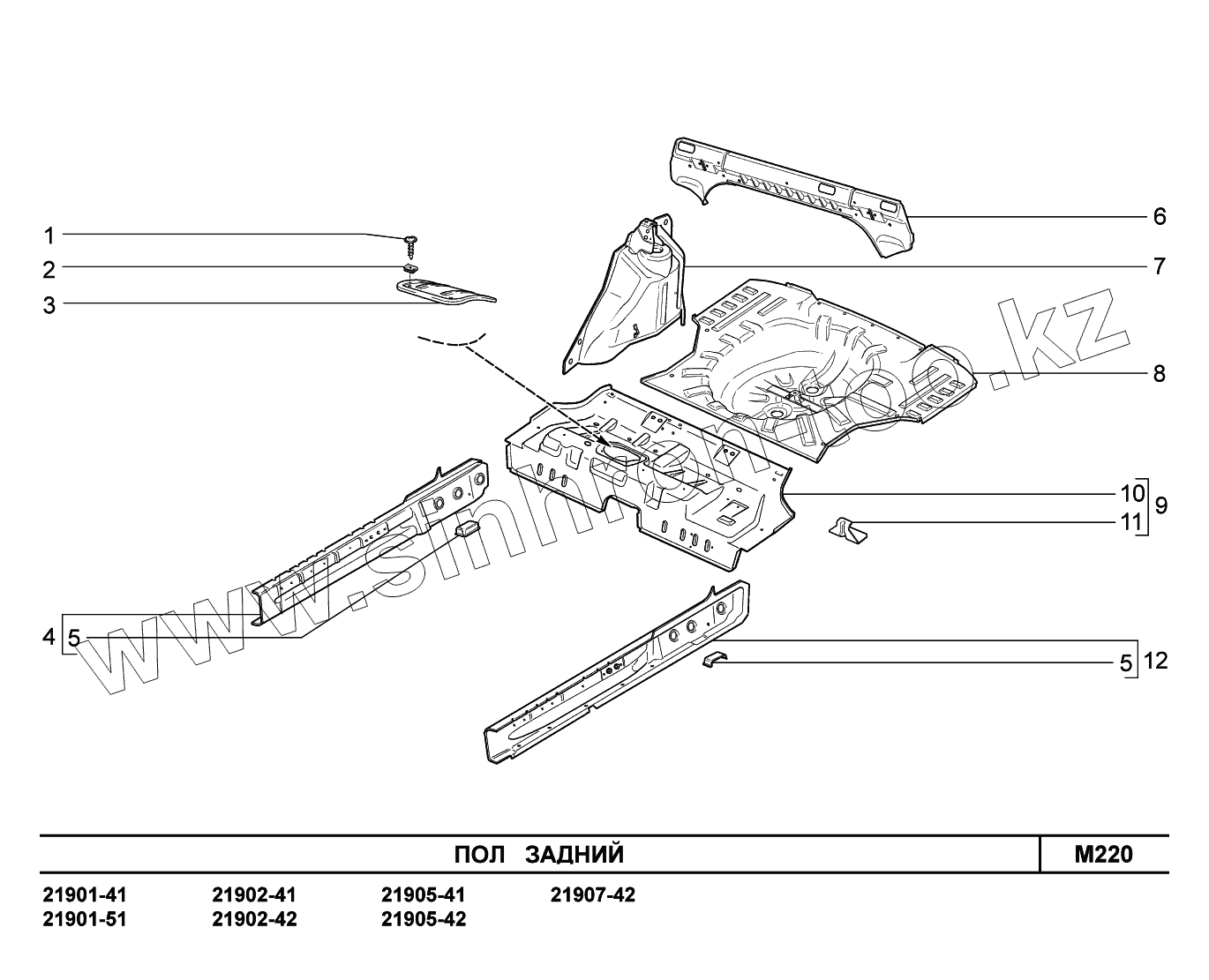 Каталог запасных частей к технике: ВАЗ LADA Granta 2190. M220. Пол задний