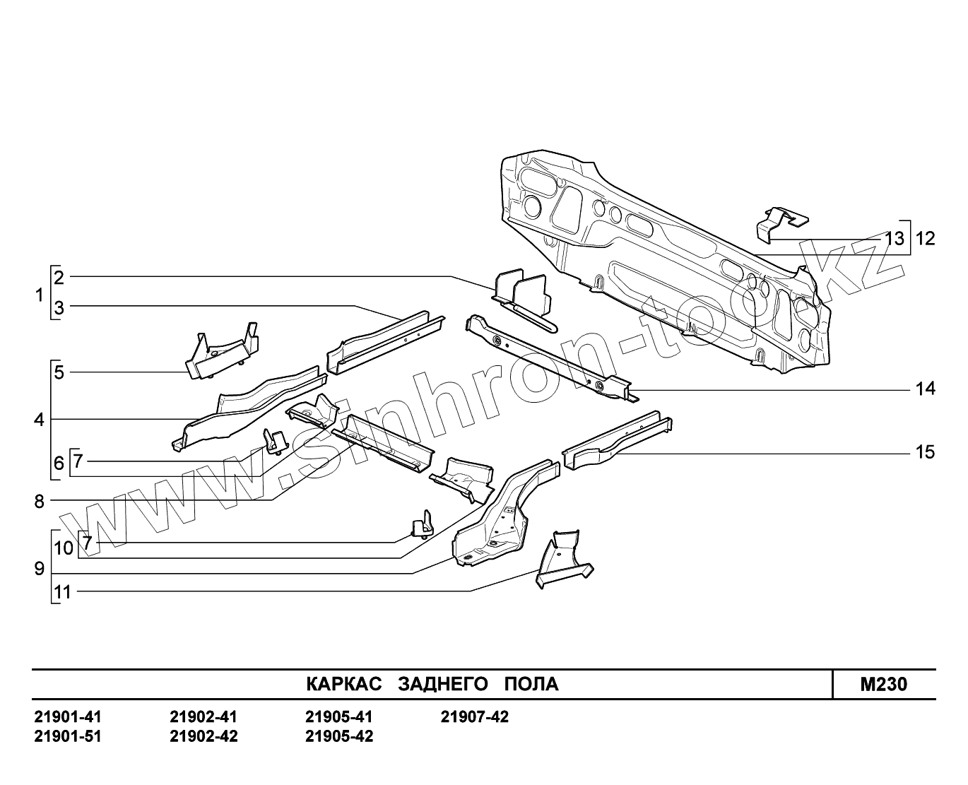 Каталог запасных частей к технике: ВАЗ LADA Granta 2190. M230. Каркас заднего пола