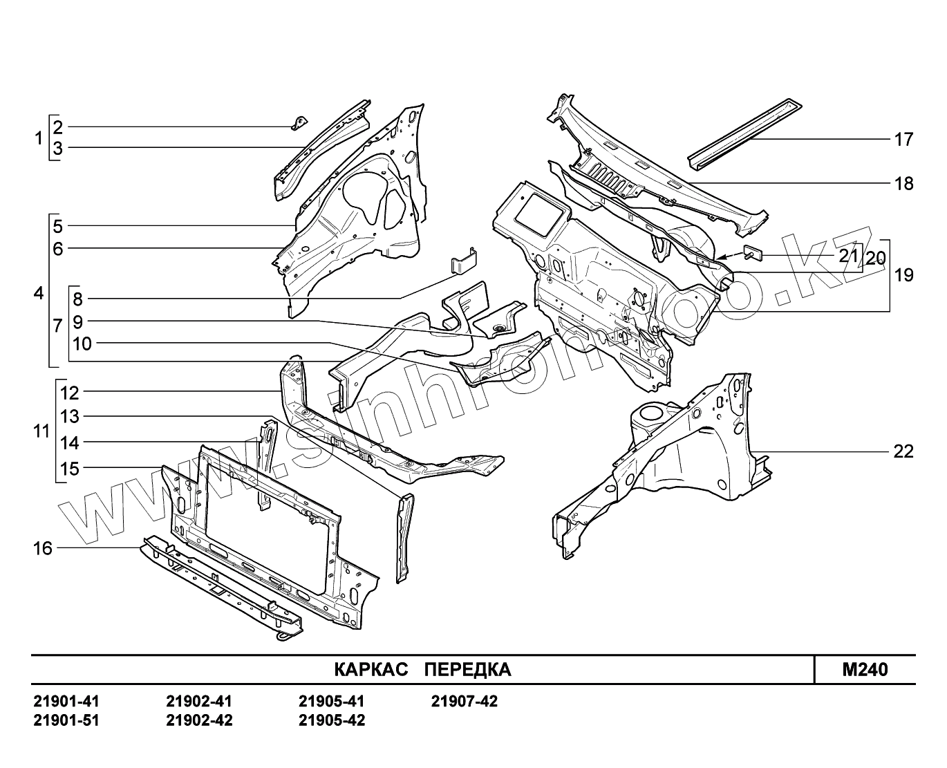 Каталог запасных частей к технике: ВАЗ LADA Granta 2190. M240. Каркас передка