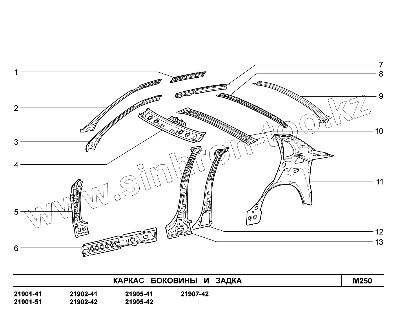 Каталог запасных частей к технике: ВАЗ LADA Granta 2190. M250. Каркас боковины и задка