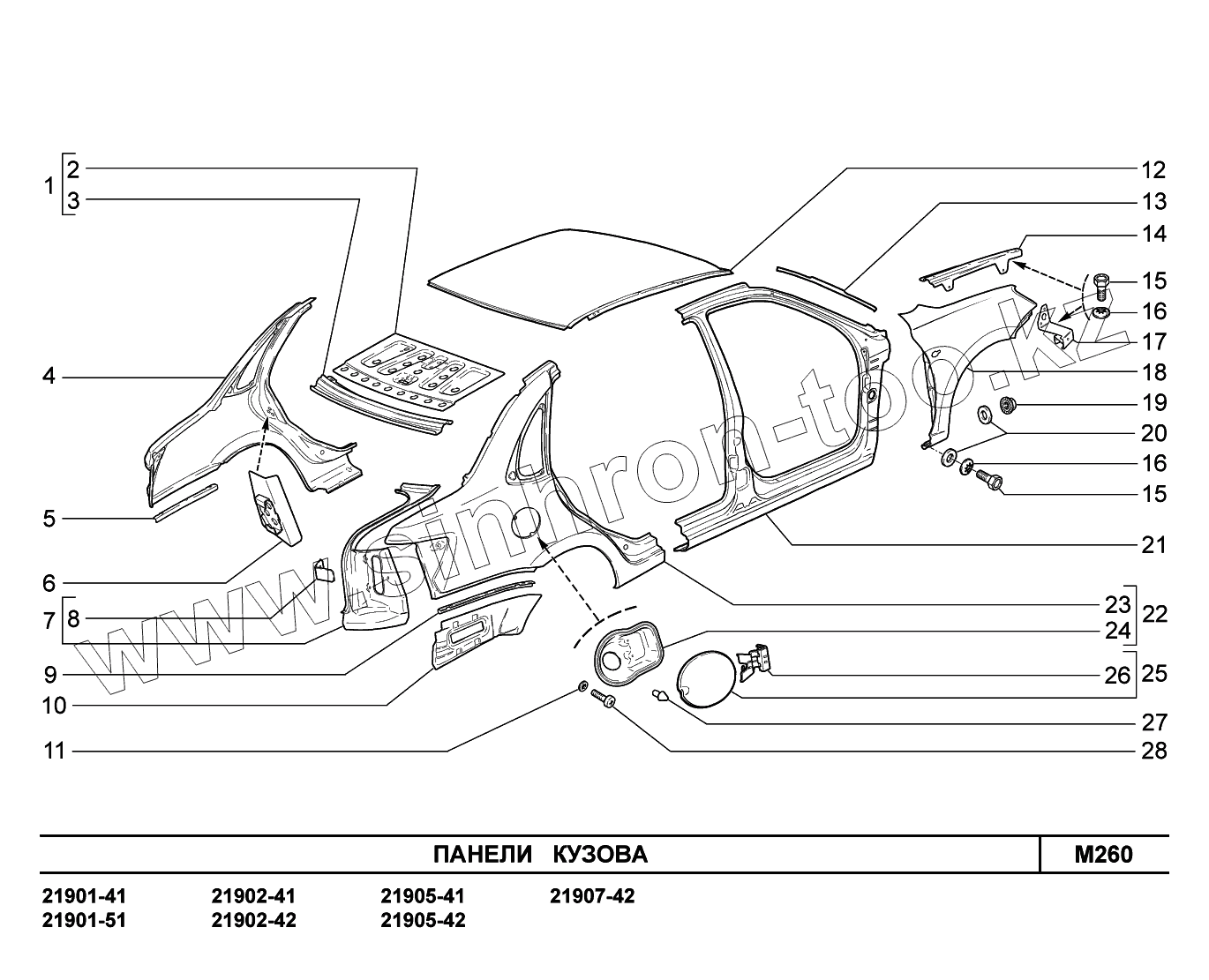 Каталог запасных частей к технике: ВАЗ LADA Granta 2190. M260. Панели кузова