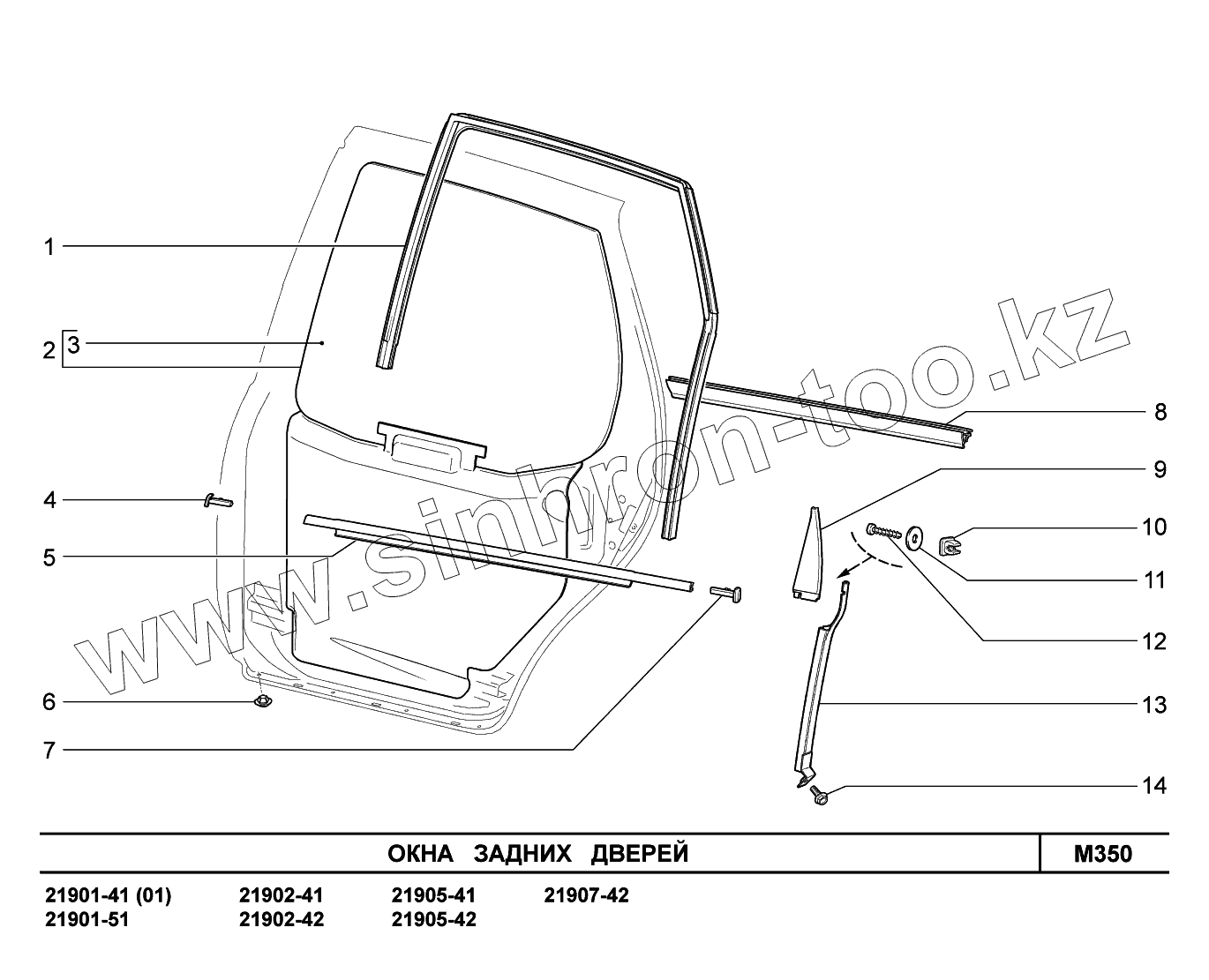 Каталог запасных частей к технике: ВАЗ LADA Granta 2190. M350. Окна задних дверей