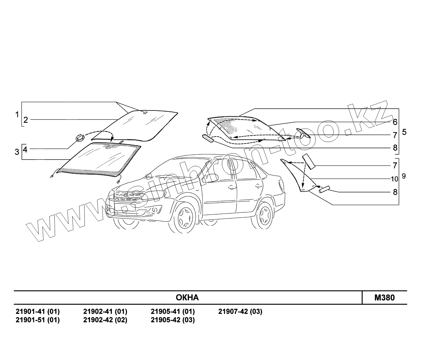 Каталог запасных частей к технике: ВАЗ LADA Granta 2190. M380. Окна