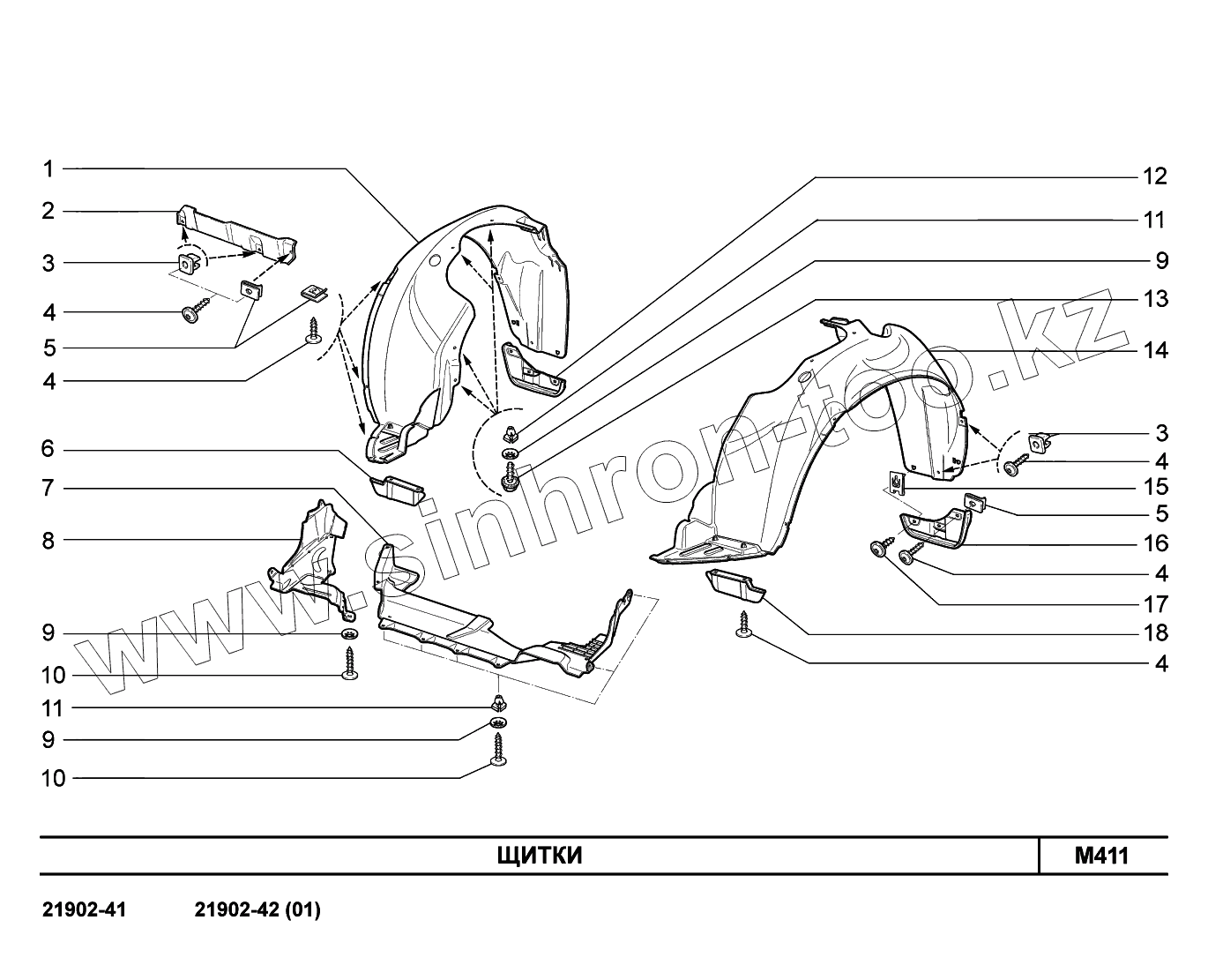 Каталог запасных частей к технике: ВАЗ LADA Granta 2190. M411. Щитки
