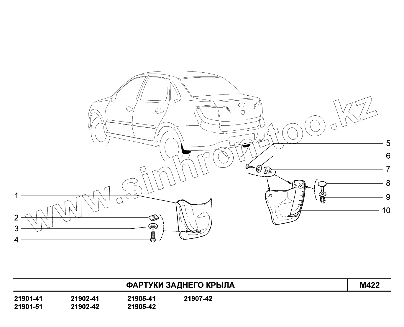 Каталог запасных частей к технике: ВАЗ LADA Granta 2190. M422. Фартуки заднего крыла