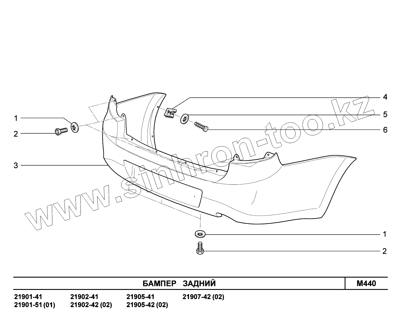 Каталог запасных частей к технике: ВАЗ LADA Granta 2190. M440. Бампер задний
