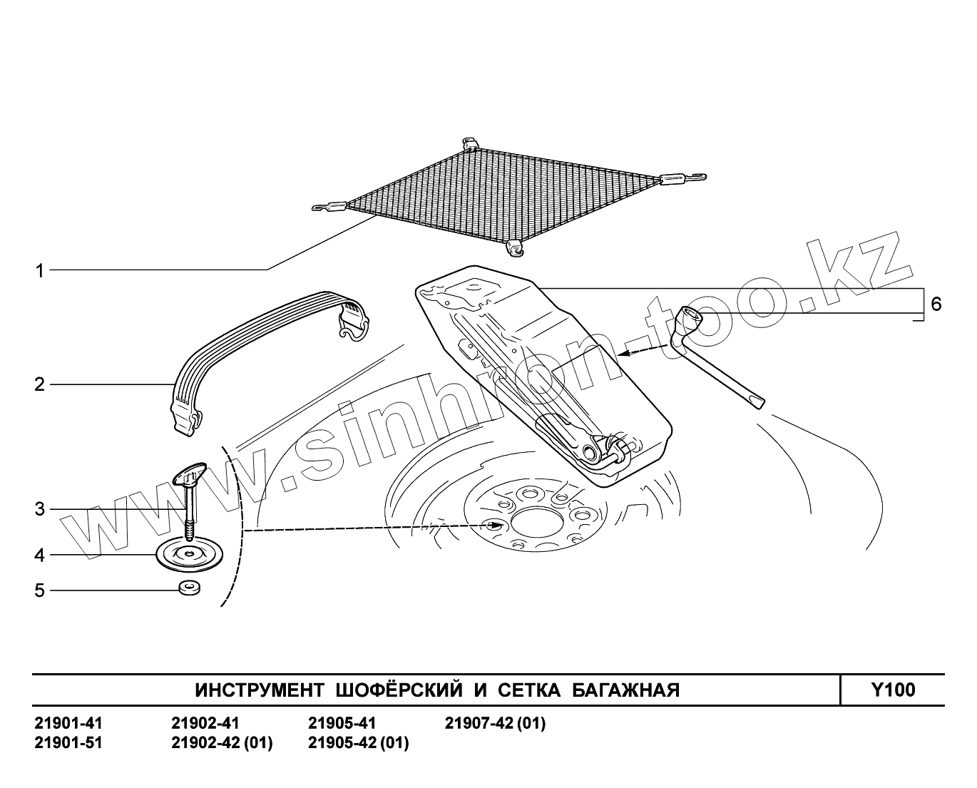 Каталог запасных частей к технике: ВАЗ LADA Granta 2190. Y100. Инструмент шоферский и сетка багажная
