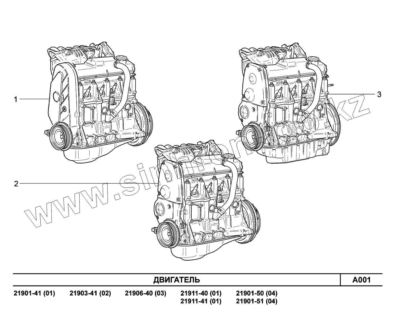 Каталог запасных частей к технике: ВАЗ LADA Granta 2190. A001. Двигатель