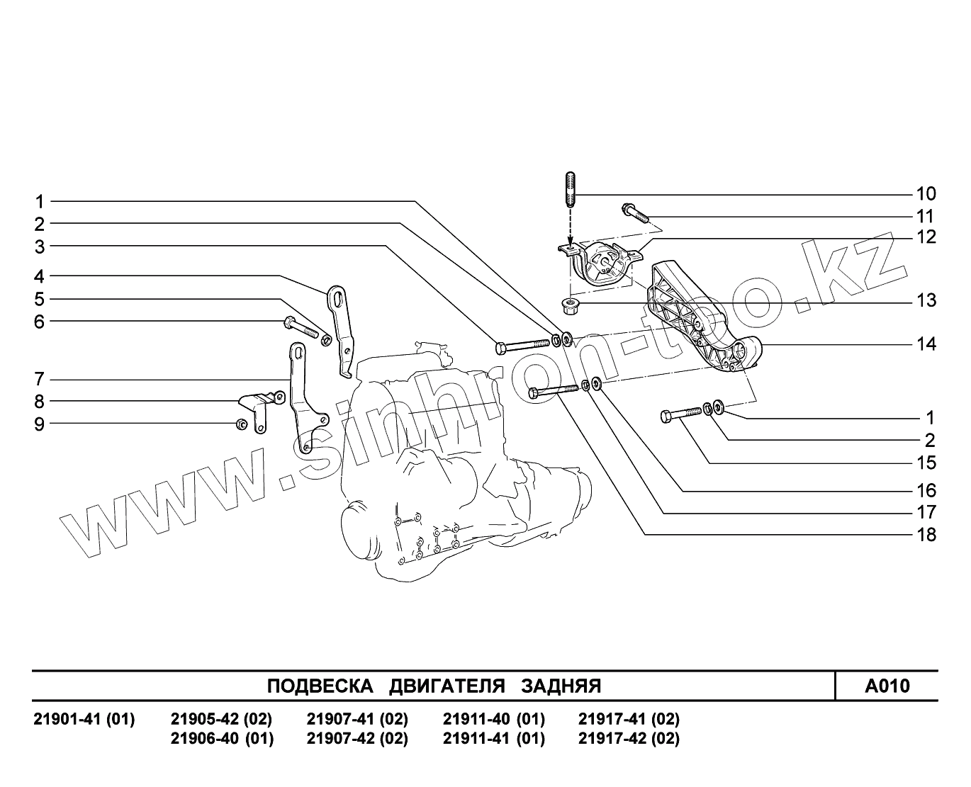 A010. Подвеска двигателя задняя