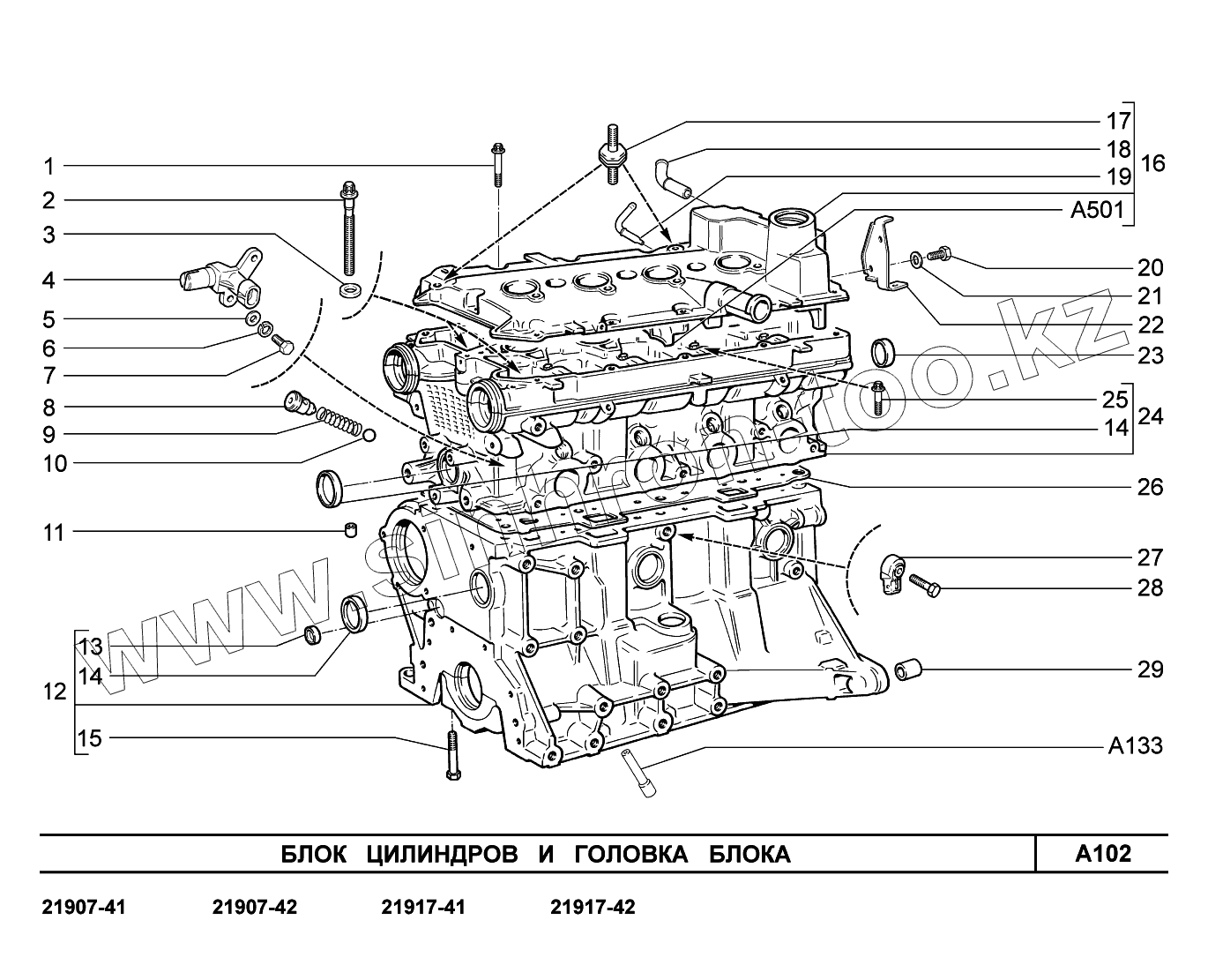 Каталог запасных частей к технике: ВАЗ LADA Granta 2190. A102. Блок цилиндров и головка блока